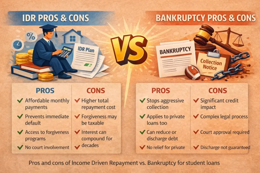 When student loan payments spiral out of control, most borrowers face one crucial decision: Income-Driven Repayment vs. Bankruptcy.